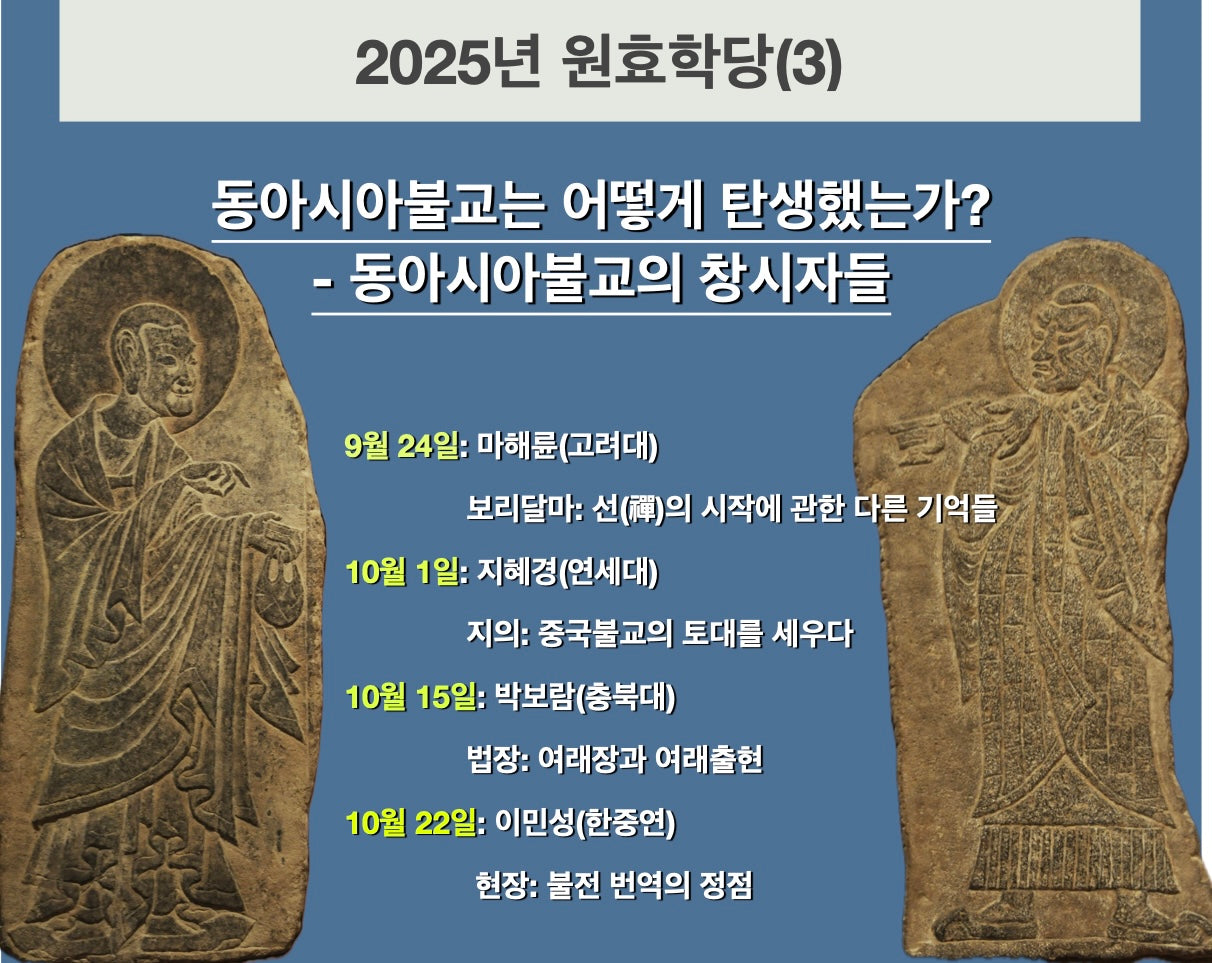 한국불교연구원에서는 ⟪동아시아불교는 어떻게 탄생했는가? -동아시아불교의 창시자들⟫ (2)라는 주제로 2025년 원효학당 세 번째 강좌를 개최합니다.